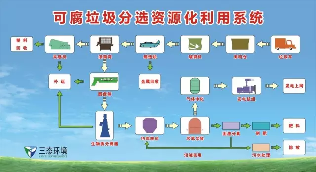 以浙江三門縣鄉(xiāng)鎮(zhèn)垃圾處理項目為案例,該項目技術(shù)最大特點為具有優(yōu)良的分選技術(shù)——二次分類自動化??梢栽诖迕癯醴值幕A(chǔ)上,經(jīng)機械自動精細(xì)分選,可選出90%以上的可腐爛垃圾,彌補現(xiàn)階段人工分類的不足。前端分選分類工程是三態(tài)的研究重點之一,其開發(fā)了小型前端智能分類、大型后端機械分類。厭氧發(fā)酵工藝也是三態(tài)體系中的重點技術(shù),目前吉林項目已運行三年多,是國內(nèi)較為大型的混合垃圾厭氧發(fā)酵穩(wěn)定運行的唯一一家。
