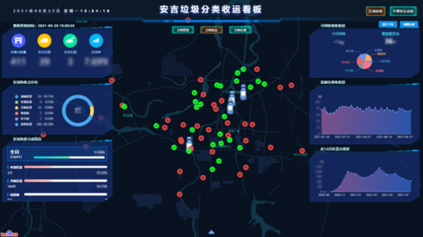 安吉縣垃圾分類智慧監(jiān)管平臺的建設應用,則消除了這種困擾,真正做到讓管理“耳聰目明”。利用物聯(lián)網(wǎng)、4G 等高新技術手段將海量、動態(tài)的垃圾分類數(shù)據(jù)有效組織起來,前端保潔車輛作業(yè)狀態(tài)、垃圾分類投放質量、收集狀態(tài)、稱重計量等數(shù)據(jù),均能夠第一時間被獲悉。垃圾分類監(jiān)管變“被動”為“主動”,各街道、小區(qū)離散的分類監(jiān)管得以集約化、統(tǒng)一化,便于第一時間發(fā)現(xiàn)問題、考核問題、解決問題,保障了監(jiān)管覆蓋面、監(jiān)管精細度、以及監(jiān)管及時性,將有效改善城市生活垃圾管理和服務環(huán)境。