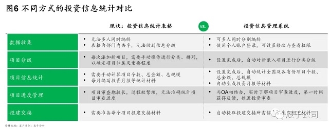 造成這一現(xiàn)象的原因,一是如前文所述,企業(yè)自身很多投資拓展條線的問(wèn)題尚未厘清,上系統(tǒng)往往是無(wú)用功,解決不了實(shí)際問(wèn)題;二是提供這類服務(wù)的專業(yè)公司很少,往往需要企業(yè)在通用軟件的基礎(chǔ)上進(jìn)行二次開發(fā),成本較高且難度較大,導(dǎo)致很多企業(yè)望而卻步。