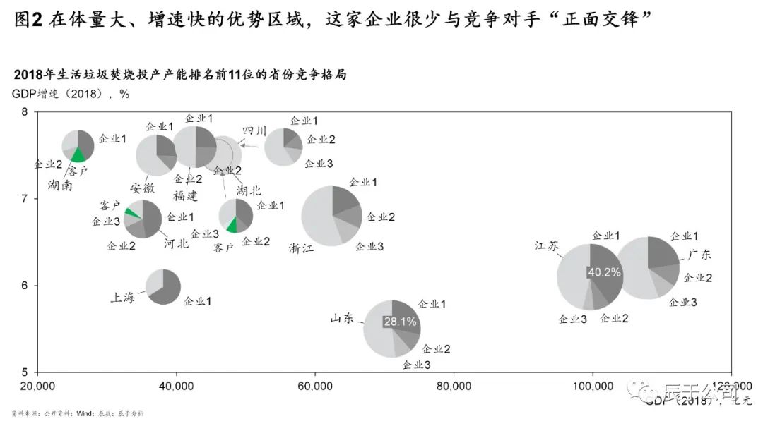 這是我們服務過的一家全國性生態(tài)環(huán)保企業(yè)的區(qū)域布局(見圖2,為保護隱私,數(shù)據(jù)已做處理),可以看到,在那些規(guī)模大、增速快的地區(qū),這家企業(yè)的市場占有率很低,盡管它的規(guī)模已位居全國前20強。這種“劍走偏鋒”其實反映出生態(tài)環(huán)保市場競爭的無奈:時至今日,“關系”似乎仍然是決定項目能否拿到手的最重要因素,技術、產(chǎn)品、運營、品牌都不重要,但唯獨不能沒有關系。上述的這些區(qū)域正是這家企業(yè)的“關系”所在。