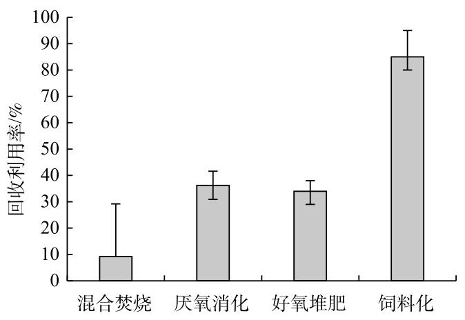 1. 廚余垃圾飼料化具有最高的回收利用率和顯著的碳減排效應(yīng);厭氧消化回收利用率較高,碳減排效應(yīng)最大;好氧堆肥的回收利用率與厭氧消化相當(dāng),但溫室氣體泄露會(huì)導(dǎo)致較高的碳排放;混合焚燒可以避免溫室氣體泄漏,但余熱發(fā)電的回收利用率較低,基本無碳減排效應(yīng)。
