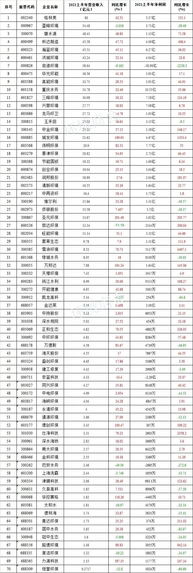 據(jù)全國(guó)工商聯(lián)環(huán)境商會(huì)不完全統(tǒng)計(jì),目前A股已有約70家環(huán)境企業(yè)披露半年報(bào),營(yíng)收實(shí)現(xiàn)同比增長(zhǎng)的企業(yè)占比為85.7%,凈利實(shí)現(xiàn)同比增長(zhǎng)的企業(yè)占比71.4%,49家企業(yè)營(yíng)收凈利雙增。