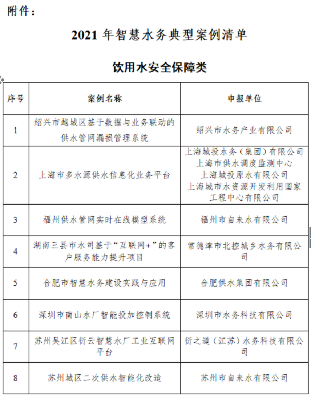 附件:2021年智慧水務(wù)典型案例清單