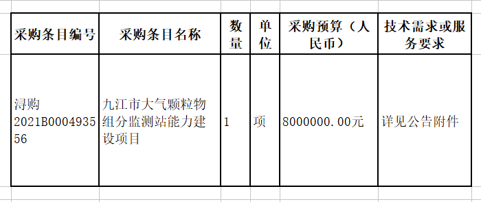 九江市大氣顆粒物組分監(jiān)測(cè)站能力建設(shè)項(xiàng)目公開(kāi)招標(biāo)