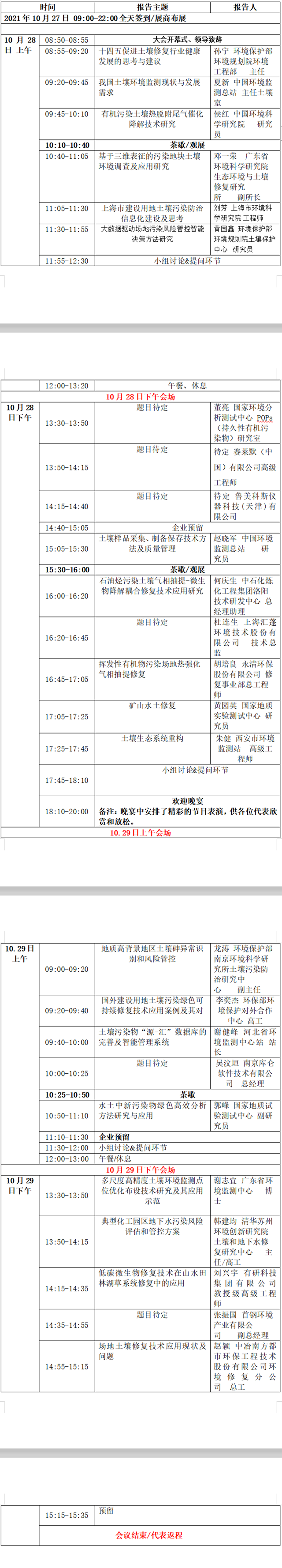 會(huì)議議程:第五屆中國土壤與地下水高峰論壇2021.10.28-29 杭州