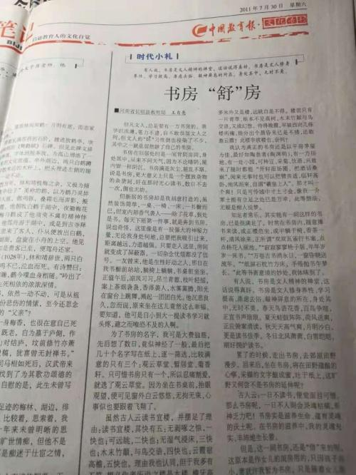 1997年,在校園文學(xué)刊《蒲園》發(fā)表文章,2008年,在《新鄉(xiāng)日報(bào)》發(fā)表文章,2011年來,接連在《中國教育報(bào)》《中國教師報(bào)》《工人日報(bào)》《中國紀(jì)檢監(jiān)察報(bào)》《文匯報(bào)》《科學(xué)時報(bào)》《中國建材報(bào)》《思維與智慧》《讀者》《青年文摘》《牧野文學(xué)》等發(fā)表作品,2012年,《山寺之夜》在《人民日報(bào)》大地副刊發(fā)表,問鼎國家第一大報(bào)的文學(xué)圣殿……作品接連在各大報(bào)刊發(fā)表,他的創(chuàng)作達(dá)到了一個小高潮。贏得了一點(diǎn)小小的聲名,各種贊譽(yù)也隨之而來。但只有他自己,明白那其中的苦辛:每日早起晚睡,眼熬紅了,發(fā)變稀了,不敢笑,一笑,眼角就是深深的皺紋。頗類于韓愈的“口不絕吟于六藝之文,手不停披于百家之編。”“焚膏油以繼晷,恒兀兀以窮年。”當(dāng)十多年不見的同學(xué)見到他的照片,驚嘆:天啊,到底經(jīng)歷了什么?把以往的小鮮肉摧殘成這般模樣。對此,他淡然一笑,有痛,更多的是充實(shí)和欣慰。他堅(jiān)信,他的付出是值得的。