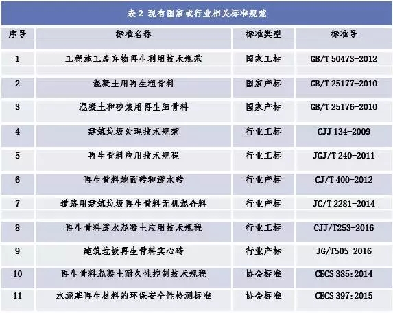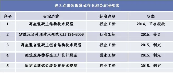 目前,建筑垃圾管理與資源化標準體系正在建設中,現(xiàn)有的建筑垃圾資源化利用及再生產(chǎn)品生產(chǎn)與應用相關國家及行業(yè)標準規(guī)范有11項,在編的相關標準規(guī)范有5項(詳見表2、表3),其中強制性標準條文不多,在某種程度上制約了再生產(chǎn)品的生產(chǎn)、使用和推廣。