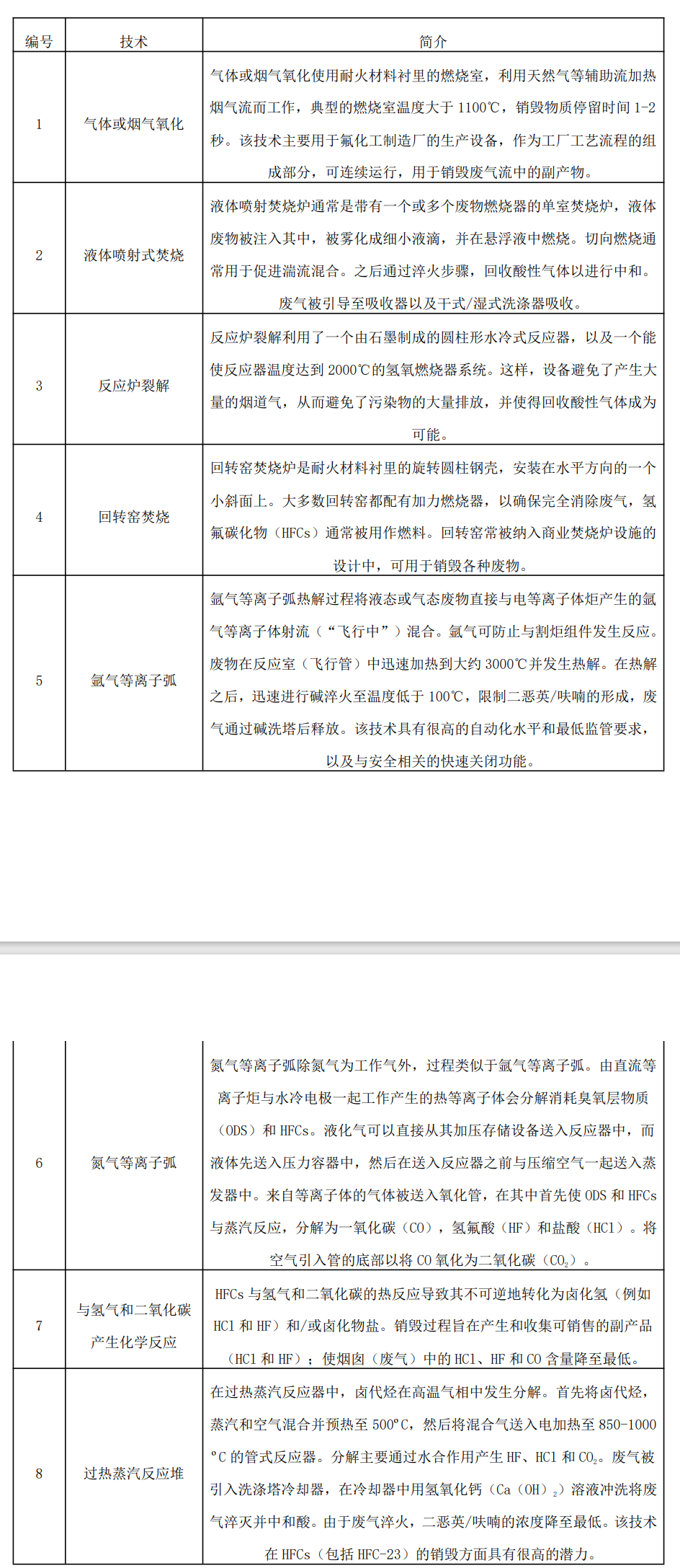 二、除作為原料用途和受控用途使用外,副產(chǎn)HFC-23應(yīng)采用《關(guān)于消耗臭氧層物質(zhì)的蒙特利爾議定書》締約方大會核準(zhǔn)的銷毀技術(shù)(見附件)盡可能銷毀處置。