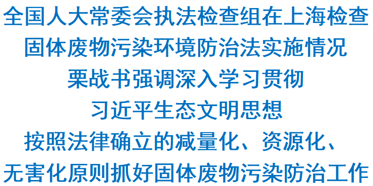 中共中央政治局常委、全國人大常委會委員長栗戰(zhàn)書9月12日至14日率全國人大常委會執(zhí)法檢查組在上海檢查固體廢物污染環(huán)境防治法實施情況。他強(qiáng)調(diào),要深入學(xué)習(xí)貫徹習(xí)近平生態(tài)文明思想,按照法律確立的減量化、資源化、無害化原則抓好固體廢物污染防治工作。