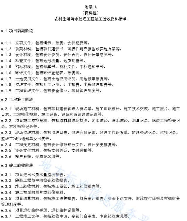按工程驗收所需的證明材料清單準(zhǔn)備驗收資料,農(nóng)村生活污水處理工程竣工驗收資料清單見附錄A。