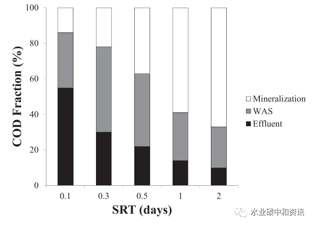 在較SRT和HRT下運行時,產(chǎn)量接近其最大值,因而可在接近最大污泥產(chǎn)率情況下,可最優(yōu)地利用COD產(chǎn)出生物質。在這些運行條件下,與傳統(tǒng)HRAS工藝相比,其去除大部分(50~80%)進水COD時所需求的曝氣量減少近60%。