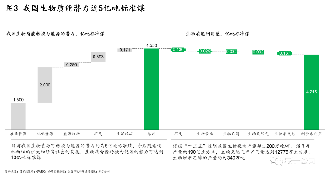 正因如此,我國(guó)生物質(zhì)能還處于發(fā)展的初級(jí)階段,潛力巨大。根據(jù)公開(kāi)資料測(cè)算,當(dāng)前我國(guó)生物質(zhì)能每年可以利用的量將近5億噸標(biāo)準(zhǔn)煤,相較之下目前已經(jīng)利用的量只有不到0.4億噸標(biāo)準(zhǔn)煤,生物質(zhì)能是一座待持續(xù)發(fā)掘的能源寶庫(kù),行業(yè)還有十幾倍的增長(zhǎng)空間。