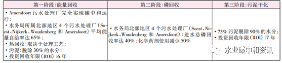 NEWs發(fā)展的終極目標(biāo)是在同一污水處理廠內(nèi)實(shí)現(xiàn)營養(yǎng)物、能源和水三位一體生產(chǎn)。Vallei & Eem 水務(wù)局計(jì)劃以Amersfoort污水處理廠為案例,探求新技術(shù)與新工藝,以使污水廠至少能達(dá)到能量自給自足的水平。具體目標(biāo)是2014年Amersfoort污水廠將以能量工廠方式運(yùn)行,除能量回收外,營養(yǎng)物(N、P)也予以回收利用。同時(shí)Vallei&Eem水務(wù)局與荷蘭應(yīng)用水研究基金會(STOWA)已開始執(zhí)行Omzet-Amersfoort合作計(jì)劃(2011——2016),這一計(jì)劃主要在Amersfoort污水廠中實(shí)施,將其轉(zhuǎn)化為能源與資源回收工廠。其預(yù)期結(jié)果見下表。