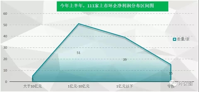 ▼今年上半年,111家上市環(huán)企凈利潤分布區(qū)間圖