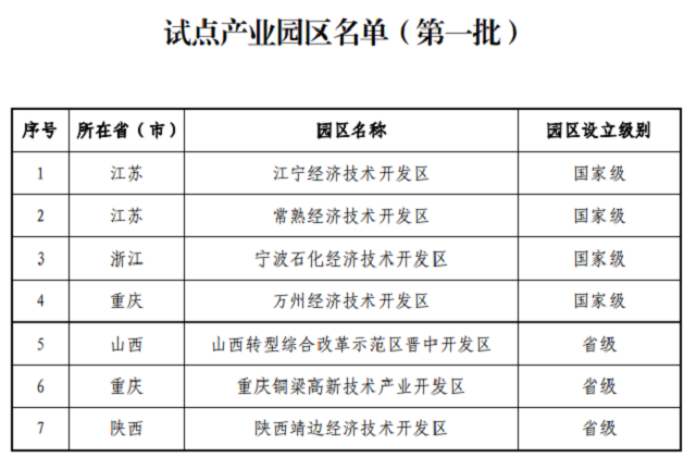 附件:1.試點產(chǎn)業(yè)園區(qū)名單(第一批)