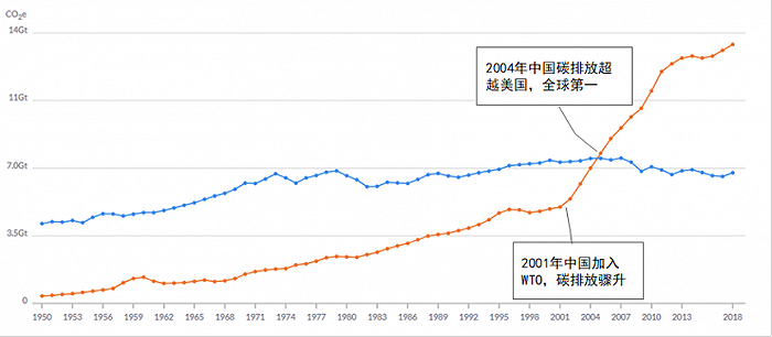 圖5:中美年碳排放對比。數(shù)據(jù)來源:PIK