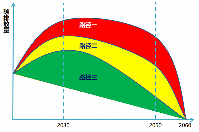 選項二:若美國釋放善意,前述的國際環(huán)境徹底改善,中國可以8-10%碳排放增長率,到2030年達(dá)峰,再緩慢下降,待2050年“碳中和”技術(shù)經(jīng)濟(jì)可行后,開始快速下降?!半p控”寬而執(zhí)行。