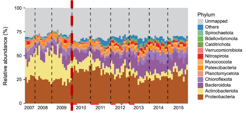 香港大學張彤教授的團隊在2007年6月到2015年 12月期間,每個月都會在香港沙田污水處理廠采集活性污泥的樣本。他們想看看,復雜的活性污泥微生物群落,在這么長的時間跨度內(nèi),在經(jīng)歷各種環(huán)境條件的變動時,這個系統(tǒng)是怎么演變的。