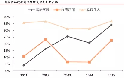 (2)專一型企業(yè):立足技術(shù)拓展市場(chǎng)。以建工修復(fù)和上田環(huán)境為代表的公司業(yè)務(wù)領(lǐng)域中基本不涉及其他業(yè)務(wù),屬于專一型的環(huán)境修復(fù)公司。此類公司共同的特點(diǎn)是重視技術(shù)能力,依托技術(shù)基礎(chǔ)尋求市場(chǎng)拓展。