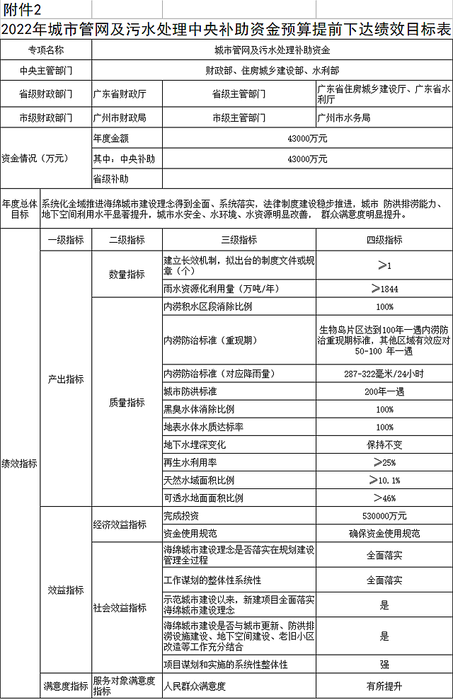 2.2022年城市管網(wǎng)及污水處理中央補助資金預算提前下達績效目標表