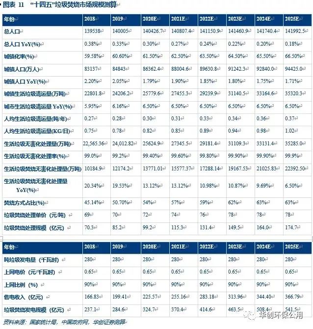 根據(jù)我們的假設,可推算到2022年,生活垃圾無害化處理量可達1.7億噸,2025年可達2.2億噸,以2020年中標項目均價72元/噸和處理單價0.65元/度的上網(wǎng)電價計算,2025年垃圾焚燒處理規(guī)模將達541億元,市場空間仍大。