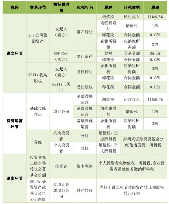 REITs持續(xù)經(jīng)營(yíng)期間,項(xiàng)目公司主要繳納運(yùn)營(yíng)基礎(chǔ)設(shè)施資產(chǎn)所產(chǎn)生的增值稅及附加、所得稅。盡管對(duì)于污水處理等綠色基礎(chǔ)設(shè)施項(xiàng)目,稅收有部分優(yōu)惠,但國(guó)外針對(duì)分紅的基礎(chǔ)設(shè)施運(yùn)營(yíng)收入部分還有更多的稅費(fèi)減免,如日本、新加坡對(duì)收入分紅部分免稅,在我國(guó)沒(méi)有針對(duì)分紅的稅收減免。且在運(yùn)營(yíng)環(huán)節(jié),項(xiàng)目公司取得運(yùn)營(yíng)收入需按規(guī)定繳納企業(yè)所得稅,項(xiàng)目公司將利潤(rùn)分配給機(jī)構(gòu)投資者后,由于機(jī)構(gòu)投資者取得的稅后分配不屬于直接投資,不能享受免稅優(yōu)惠,導(dǎo)致重復(fù)繳納企業(yè)所得稅。目前,美國(guó)、新加坡和香港均給予REITs不同程度的所得稅豁免以避免重復(fù)征稅,而在中國(guó)重復(fù)征稅的問(wèn)題依然存在。