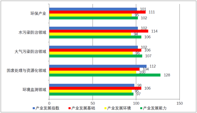 從各細(xì)分領(lǐng)域的發(fā)展特色看:①水污染防治領(lǐng)域,產(chǎn)業(yè)規(guī)模迅速擴(kuò)張,產(chǎn)業(yè)結(jié)構(gòu)明顯改善,重資本拉動特征明顯,社會資本融入能力大幅提升,出口能力表現(xiàn)出色,但創(chuàng)新產(chǎn)出效率有待挖潛;②大氣污染防治領(lǐng)域,產(chǎn)業(yè)發(fā)展基礎(chǔ)穩(wěn)固,市場環(huán)境向好,融資能力成為推高發(fā)展指數(shù)的最強(qiáng)動力,而投資熱情有待進(jìn)一步釋放;③固廢處理與資源化領(lǐng)域,產(chǎn)業(yè)規(guī)模迅速擴(kuò)大,流動資金運(yùn)轉(zhuǎn)加快,市場環(huán)境顯著改善,融資能力與投資能力大幅提升,營運(yùn)能力成為發(fā)展短板;④環(huán)境監(jiān)測領(lǐng)域,產(chǎn)業(yè)發(fā)展基礎(chǔ)穩(wěn)固,市場環(huán)境向好,技術(shù)創(chuàng)新能力大幅提升。發(fā)揮環(huán)保產(chǎn)業(yè)各細(xì)分領(lǐng)域的優(yōu)勢、補(bǔ)齊其存在的短板和深入挖掘潛力空間,有助于提振發(fā)展動力,釋放發(fā)展?jié)撃?,進(jìn)而促進(jìn)環(huán)保產(chǎn)業(yè)整體更好地向前發(fā)展。