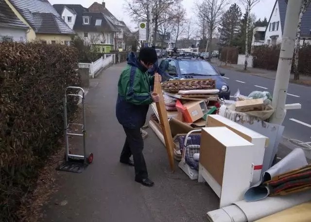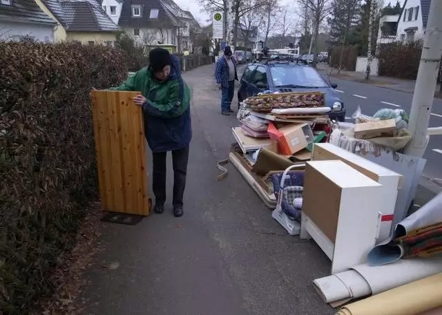有人說了,德國人這樣扔家具,街上豈不是亂啦。嘿嘿,其實是這樣的,每個德國城市規(guī)定不同,但一般都是在固定時間允許扔,或者是和收家具的工人約時間。家具在街上不會呆多長時間,工人就來收了。