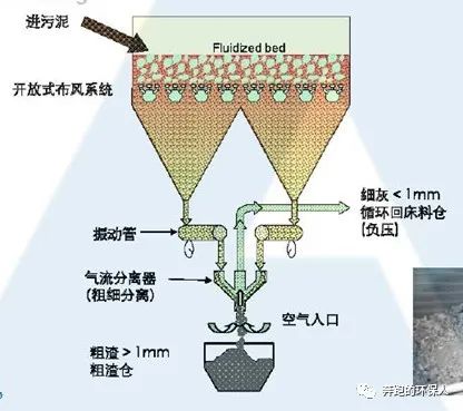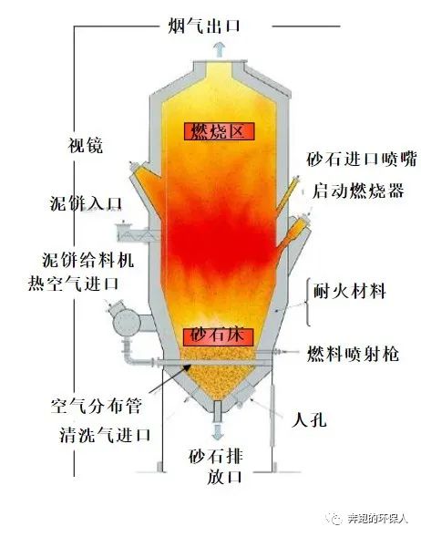 污泥進爐口:位于砂床上方,流化床干化到干度90%左右,爐子需要干濕污泥一起燒,因此需要搭配。半干污泥輸送采用螺旋和刮板輸送的方式送入焚燒爐內(nèi)。(小編說:進料采用砂床上方進料,污泥進入后會往下掉,上部需要做的更大,才能保證煙氣停留時間。)