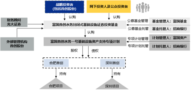 其次,由富國資產(chǎn)作為專項(xiàng)計(jì)劃管理人設(shè)立首創(chuàng)水務(wù)基礎(chǔ)設(shè)施資產(chǎn)支持專項(xiàng)計(jì)劃,首創(chuàng)水務(wù)基礎(chǔ)設(shè)施證券投資基金設(shè)立后以募集資金認(rèn)購資產(chǎn)支持專項(xiàng)計(jì)劃全部份額,專項(xiàng)計(jì)劃完成設(shè)立。