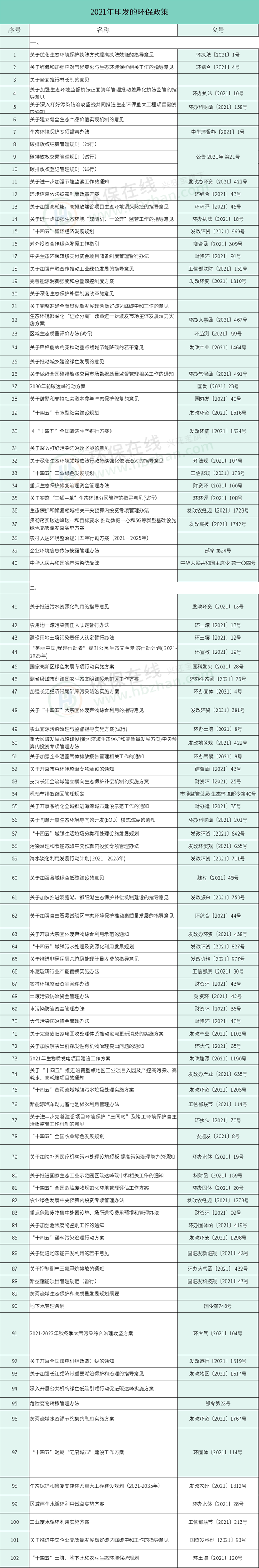 (2021年環(huán)保政策一覽 僅供參考)