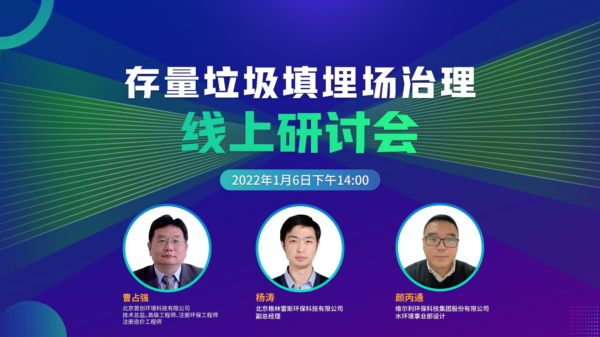 新的一年,踐行綠色環(huán)保理念從赴一場精彩紛呈的研討會(huì)開始!1月6日下午14:00,歡迎大家鎖定直播間,聚焦存量垃圾填埋場治理。