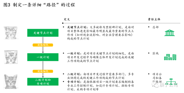 這些應當做的事項應該明確下來,成為詳細的項目實施計劃——在時間維度上確定每個時間節(jié)點上,明確每個參與者要提供什么、做到什么,這才真正把目標分解下去。大多成功案例中,企業(yè)的工程管理都是抓大放小,先管住關鍵節(jié)點,把控整個項目,在關鍵節(jié)點下,再一步步確定更加詳細的計劃(如圖3)。如果每個階段的目標都能達成,那么最終的目標自然能夠實現(xiàn)。