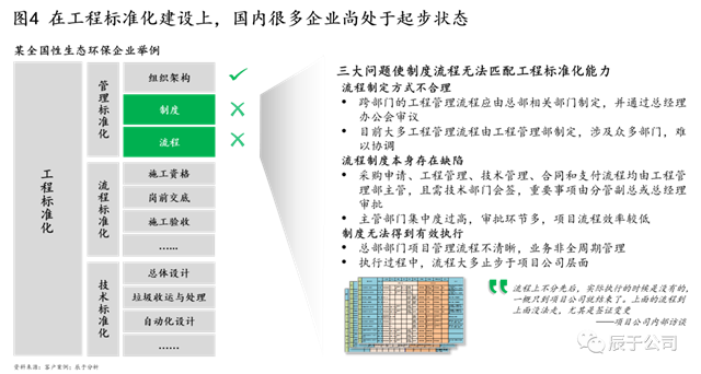工程管理是項目落地的關鍵環(huán)節(jié),可以用“熱鬧”和“兩面”來形容生態(tài)環(huán)保行業(yè)的這一環(huán)節(jié):“熱鬧”是指工程管理多方參與,人員眾多,開工后熱火朝天,而為了推進工程建設進程,免不了大量的溝通甚至扯皮,部門間扯皮、甲乙方扯皮、上下級扯皮,同樣是個“熱鬧”場景;“兩面”是說工程開工意味著大筆投資,“正面”是企業(yè)投建邁出關鍵一步,業(yè)務擴張,發(fā)展蒸蒸日上,工程建設也給一些企業(yè)帶來了當期收入和利潤,“反面”是甲方的工程管理容易陷入混亂,計劃趕不上變化,行業(yè)超過一半的項目正發(fā)生著超概、延期的風險。