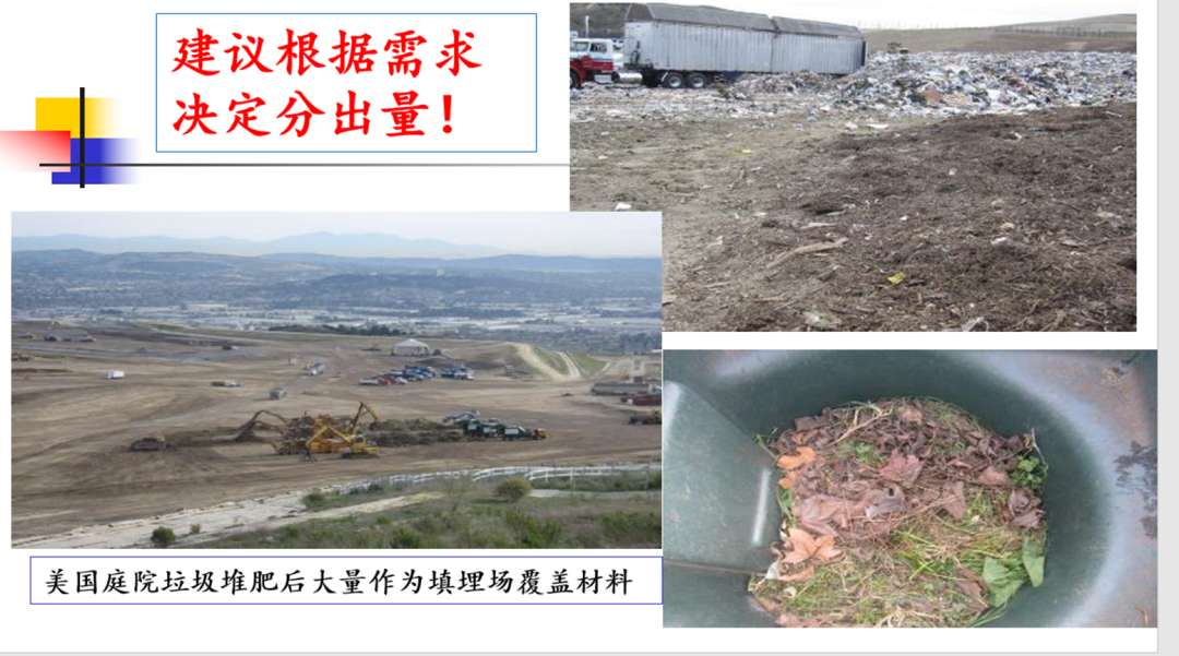 我在現(xiàn)場就問當(dāng)?shù)毓芾砣藛T,已經(jīng)形成這么好的肥料為什么還在填埋場填埋呢?得到的答案是:用不完。這種情況在美國很常見,盡管經(jīng)過哥倫比亞大學(xué)教授的研究論證,認(rèn)為雖然在填埋場但不算填埋處理,而統(tǒng)計為填埋場覆蓋物,算作回收利用,但是這種現(xiàn)象其實說明,無論貼什么標(biāo)簽,只要沒人用的就是垃圾,這個情況在全世界都是現(xiàn)實存在的。