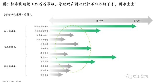 更要命的是,總部的能力提升與體系建設(shè)工作遲遲不能開(kāi)展,即使開(kāi)展也因?yàn)?ldquo;事務(wù)纏身”幾無(wú)進(jìn)展或質(zhì)量不高,當(dāng)下“時(shí)髦的”數(shù)字化、智慧化運(yùn)營(yíng)更無(wú)從談起,或只能做做“面子工程”(見(jiàn)圖5)。