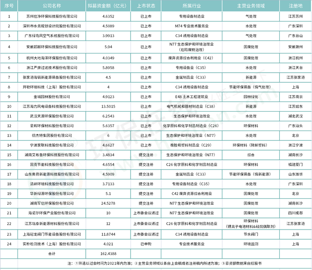 不過,可以看到,24家企業(yè)擬募資金額合共也才162億出頭一點,募資規(guī)模普遍較小,10億+的有海力風電、軍信環(huán)保、海諾爾、瑞泰和冠龍閥門。不過從已上市的14家企業(yè)來看,天源環(huán)保募資凈額達到11.28億元,星輝環(huán)材達到25.09億元。
