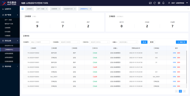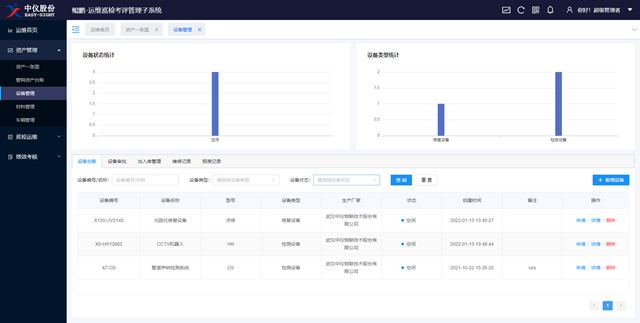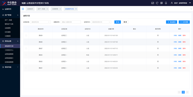 資產(chǎn)管理:加入設(shè)備、材料、車(chē)輛等資產(chǎn)管理臺(tái)賬,簡(jiǎn)化設(shè)備申請(qǐng)、維修等使用流程,全面管控日常巡檢工作所需資產(chǎn)。