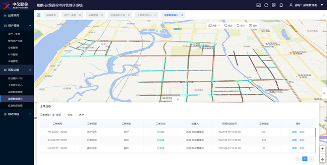 成果數(shù)據(jù)展示:將人員軌跡、巡視路線、巡視工單以及巡視成果集成至一張圖上,形成專題圖展示。