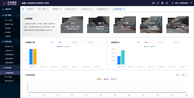 績(jī)效考核:依據(jù)考核人員考勤、工作量以及完成情況等實(shí)現(xiàn)人員的績(jī)效考核;依據(jù)時(shí)間跨度、隱患類型、隱患區(qū)域來(lái)進(jìn)行抽樣檢查,考察整個(gè)運(yùn)維效果。