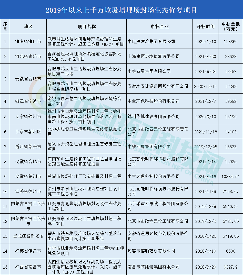 千萬級垃圾填埋場生態(tài)修復項目頻出,