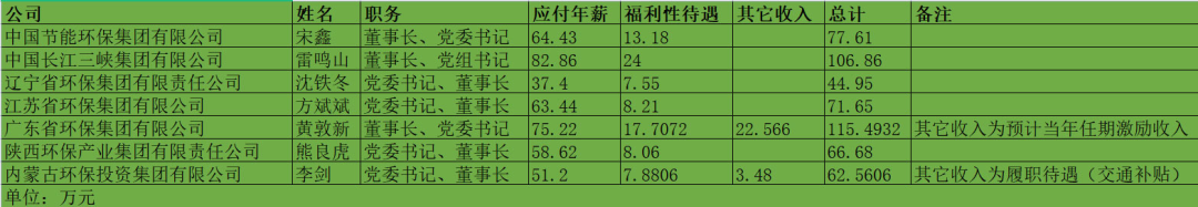 單看行業(yè)平均水平,大家感覺似乎有點悲觀,好像環(huán)保行業(yè)沒啥前途。不過,如果從高管薪酬水平來看,其實環(huán)保行業(yè)還是有不少收入較高的職位的。近日,國務(wù)院國資委和各地方國資委就公布了所屬企業(yè)負(fù)責(zé)人的薪酬情況,本文就給大家盤一盤環(huán)保行業(yè)高管的薪酬情況,看一看“國家隊”、地方環(huán)保集團(tuán),以及民企上市公司誰的薪酬水平更高?2021年的最后一天,國務(wù)院國資委發(fā)布《2020年度中央企業(yè)負(fù)責(zé)人薪酬披露》,公布了96家中央企業(yè)負(fù)責(zé)人的薪酬水平。其中,與環(huán)保行業(yè)有關(guān)的主要是兩家企業(yè),一家是中國節(jié)能環(huán)保集團(tuán)有限公司(下稱“中節(jié)能”),另一家是中國長江三峽集團(tuán)有限公司(下稱“三峽集團(tuán)”)。兩家企業(yè),都是國家實施“長江大保護(hù)”戰(zhàn)略的平臺型公司,作用都非常重要。兩家企業(yè)中,三峽集團(tuán)負(fù)責(zé)人的薪酬水平略高,董事長、黨組書記雷鳴山的應(yīng)付年薪和福利性待遇(主要指社會保險、企業(yè)年金、補充醫(yī)療保險及住房公積金)總計達(dá)到106.86萬元,而中節(jié)能董事長、黨委書記宋鑫則為77.61萬元。看完“國家隊”的,再來看看地方環(huán)保集團(tuán)的。在國務(wù)院國資委公布央企負(fù)責(zé)人薪酬水平的同時,各地方國資委也公布了2020年度省屬企業(yè)負(fù)責(zé)人的薪酬信息,北極星環(huán)保網(wǎng)專門整理了5家地方環(huán)保集團(tuán)企業(yè)負(fù)責(zé)人的薪酬情況。這5家地方環(huán)保集團(tuán)分別是:遼寧省環(huán)保集團(tuán)有限責(zé)任公司、江蘇省環(huán)保集團(tuán)有限公司、廣東省環(huán)保集團(tuán)有限公司、陜西環(huán)保產(chǎn)業(yè)集團(tuán)有限責(zé)任公司和內(nèi)蒙古環(huán)保投資集團(tuán)有限公司。5家企業(yè)中,企業(yè)負(fù)責(zé)人薪酬最高的是廣東省環(huán)保集團(tuán)有限公司,其董事長、黨委書記黃敦新應(yīng)付年薪為75.22萬元,福利性待遇17.7072萬元,另外還有22.5660萬元的預(yù)計當(dāng)年任期激勵收入,合計一共是115.4932萬元。薪酬最低的,是遼寧省環(huán)保集團(tuán)有限責(zé)任公司,黨委書記、董事長沈鐵冬應(yīng)付年薪37.40萬元,福利性待遇7.55萬元,總計44.95萬元。其余3家企業(yè),負(fù)責(zé)人薪酬水平都差不太多,基本在60萬元-70萬元之間。全部看下來,可以看出,無論是“國家隊”還是地方環(huán)保集團(tuán),企業(yè)負(fù)責(zé)人的薪酬水平都不能算太高,超過100萬元的已屬于鳳毛麟角,大部分都在60萬元-70萬元左右。相對來說,南方企業(yè)總體來講比北方企業(yè)的薪酬水平要高一點。例如廣東、江蘇的地方環(huán)保集團(tuán),企業(yè)負(fù)責(zé)人薪酬就要比陜西、內(nèi)蒙古高,而遼寧在已公布的幾個省份中則是最低。▼2家環(huán)保央企和5家地方環(huán)保集團(tuán)企業(yè)負(fù)責(zé)人薪酬信息。制圖:環(huán)保圈看完環(huán)保行業(yè)央企和地方國資的高管薪酬情況,再來看看民企的。這方面,主要信息來源是各大環(huán)保上市公司的2020年的年報。具體的數(shù)據(jù),《環(huán)保圈》去年曾經(jīng)總結(jié)過,這里直接說結(jié)論。首先,我們統(tǒng)計了217位上市環(huán)保企業(yè)高管的薪酬水平,平均值是每人97萬元/年,接近“百萬元”吧。其次,雖然平均值達(dá)到了“百萬元”,但具體來看,每個人的情況差別還是很大的。最高的可以拿到625萬元,最低的則只有2.4萬元,足足相差了260倍。年薪最高的,是盈峰環(huán)境副總裁陳培亮,2020年年薪高達(dá)625萬元,可謂是環(huán)保領(lǐng)域的“最強(qiáng)打工人”。排名第二、第三的也是民企,他們分別是格林美的兩位高管——55歲的董事長許開華(587萬元/年)和62歲的常務(wù)副總王敏(312萬元/年)。此外,年薪在150萬元以上的還有:中持股份副總經(jīng)理張翼飛、東江環(huán)保董事長譚侃、節(jié)能國禎創(chuàng)始人李煒、東方園林董事長劉偉杰、博天環(huán)境董事長趙笠鈞、瀚藍(lán)環(huán)境總經(jīng)理金鐸、清新環(huán)境總裁李其林、維爾利董事長李月中等。可以看出,這些企業(yè)絕大多數(shù)都是民企(2020年時中持、國禎、博天等尚未完成“混改”)。▼年薪過200萬的13位上市環(huán)保企業(yè)高管2020年年薪最低的董事長是富春環(huán)保董事長萬嬌,只有2.5萬元,月平均工資約2000元。大家知道,富春環(huán)保是一家剛剛經(jīng)歷了“混改”的企業(yè),2020年南昌市國資委剛剛?cè)胫?,萬嬌則是由南昌國資提名,代替原董事長的人選。當(dāng)然,民企高管的薪酬水平也并不一定都很高,也有偏少的。比如中國天楹,除總裁曹徳標(biāo)年薪36萬元外,其余副總裁一律年薪25萬元,月工資2.1萬。▼中國天楹高管團(tuán)隊收入(數(shù)據(jù)/東方財富網(wǎng))總體來看,排名靠前、薪酬較高的企業(yè),絕大多數(shù)都是業(yè)績表現(xiàn)好,坐落于北上廣深的大型環(huán)保上市企業(yè),如盈峰環(huán)境、格林美、中持股份、首創(chuàng)股份、綠色動力、清新環(huán)境等。總體來看,“國家隊”、地方環(huán)保集團(tuán)企業(yè)負(fù)責(zé)人的薪酬屬于中上水平,不是很高,但也不算太低。民企這邊,則呈現(xiàn)出“兩極分化