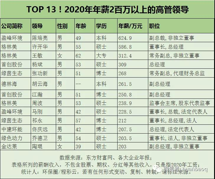 3、環(huán)保行業(yè)高管薪酬大揭秘!哪家公司待遇最好?“最強(qiáng)打工人”是誰?環(huán)保圈,2021-06-11