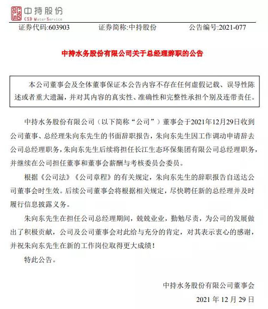 4、朱向東辭任中持股份總經(jīng)理,將擔(dān)任長江環(huán)保集團(tuán)總經(jīng)理,全聯(lián)環(huán)境商會,2021-12-30