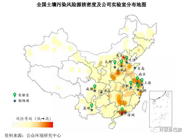 5. 2B的業(yè)務(wù)模式。相比土壤修復(fù)整體以2G為主的業(yè)務(wù)模式,土壤環(huán)境檢測(cè)下游主要為場(chǎng)調(diào)公司及修復(fù)公司,主要為2B模式,這為民營(yíng)企業(yè)早期的快速全國(guó)擴(kuò)張和規(guī)?;瘡?fù)制提供了可能。