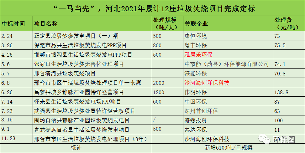 除了數(shù)量眾多之外,河北釋放的垃圾焚燒項目也頗具看點,不僅吸引了中節(jié)能、中國環(huán)保、康恒環(huán)境、深能環(huán)保、偉明環(huán)保、首創(chuàng)環(huán)保等影響力企業(yè)前來角逐,也有危廢行業(yè)龍頭雅居樂環(huán)保前來“分羹”,還有剛成立不久的本土企業(yè)“沙河海創(chuàng)環(huán)??萍肌笔斋@訂單。