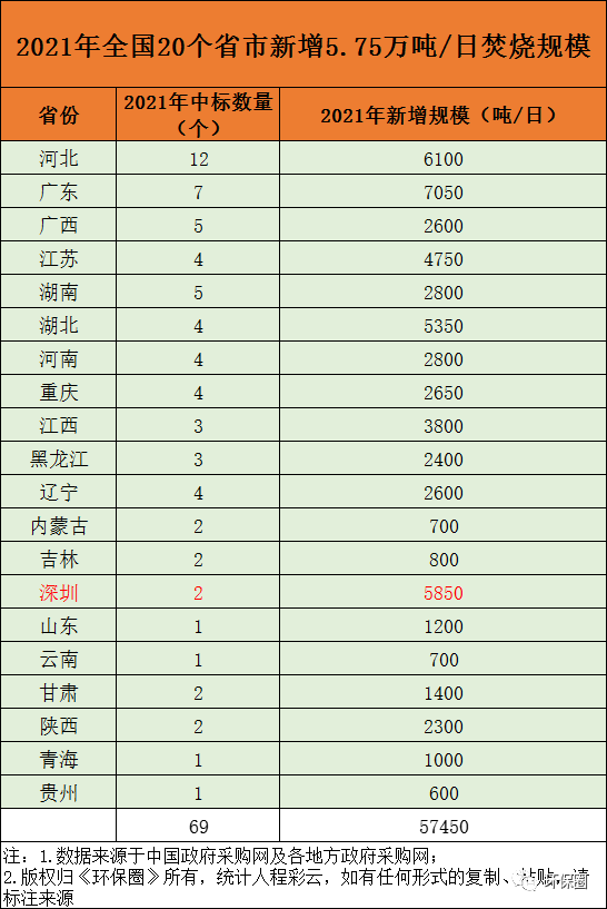本文將從日處理規(guī)模、總投資、項目分布的省份、中標企業(yè)等幾個角度,對2021年國內(nèi)新中標的垃圾焚燒項目做出全面細致的梳理,并試著從具體項目及企業(yè)動態(tài)中總結(jié)出行業(yè)的幾大變化趨勢,僅供參考。