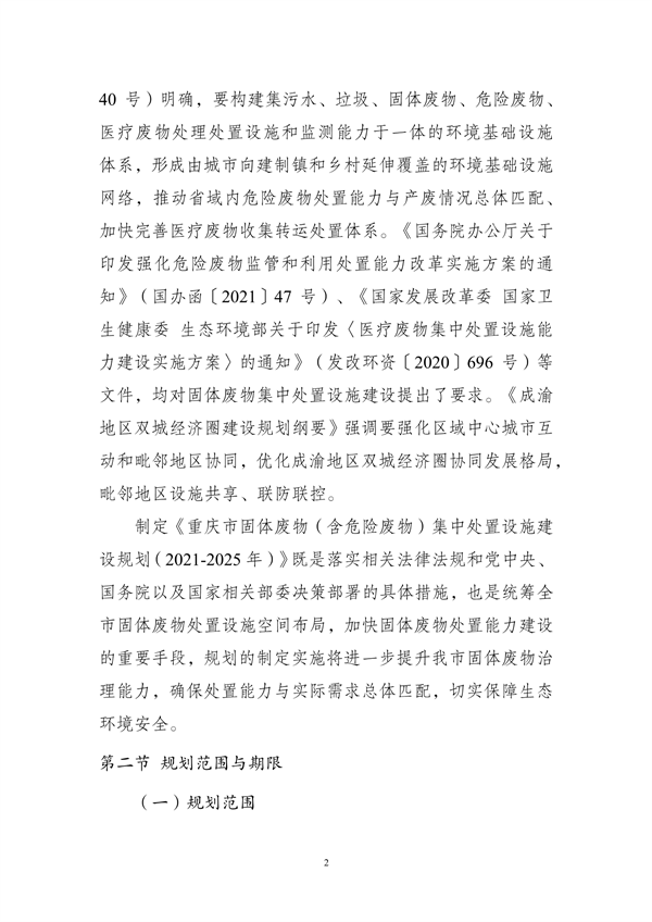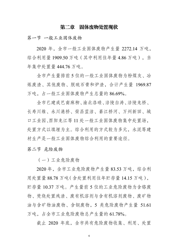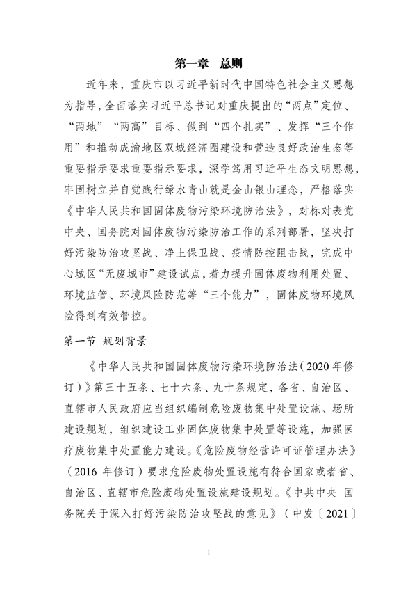重慶市生態(tài)環(huán)境局編制了《重慶市固體廢物(含危險廢物)集中處置建設(shè)布局規(guī)劃(2021—2025年)》(征求意見稿),向社會公開征求意見。