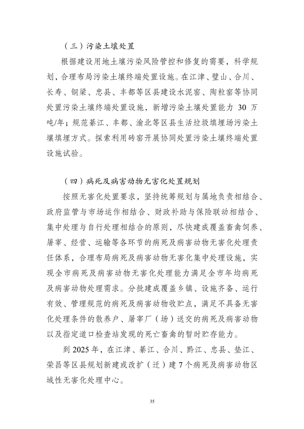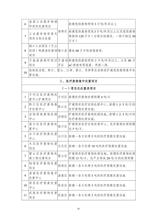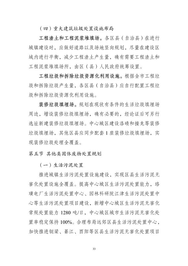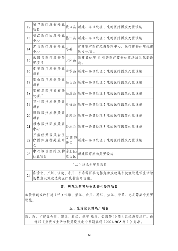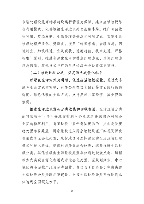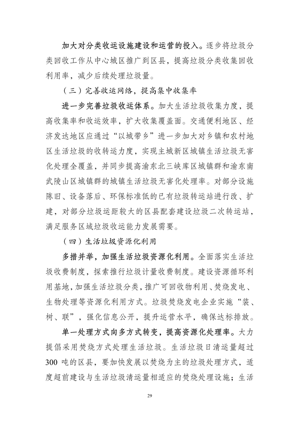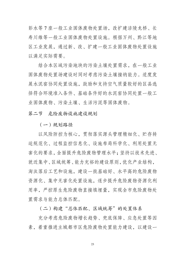 其中提出,到2025年,重慶市中心城區(qū)原生生活垃圾實現(xiàn)“零填埋”,規(guī)劃建設(shè)8個一般工業(yè)固體廢物集中處置設(shè)施建設(shè)項目,9個危險廢物集中處置設(shè)施建設(shè)項目,23個醫(yī)療廢物集中處置項目,新、改、擴建設(shè)合川、銅梁、綦江、奉節(jié)-巫溪、云陽等19座生活垃圾焚燒廠,新、改、擴建設(shè)渝北、合川、永川等23座廚余垃圾處理廠,新、改、擴建設(shè)渝北、涪陵、長壽等30座裝修垃圾填埋場。