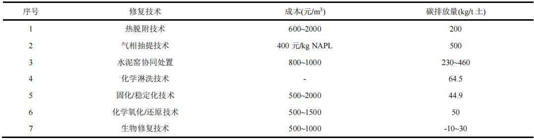 表2 土壤修復(fù)部分技術(shù)案例碳排放對(duì)比